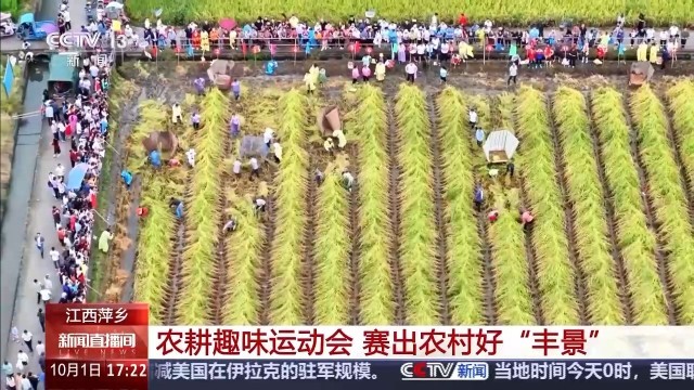 国庆假期,也正是南方水稻丰收的时候。这段时间,江西萍乡市芦溪县银河镇举办了庆丰收活动,把农田化身运动场,农活变为竞技项目。在活动现场,水田抓鱼、收禾比赛、旱地拔河等一系列精心打造的趣味农事竞赛,让参与体验的游客直呼过瘾,享受丰收的喜悦。