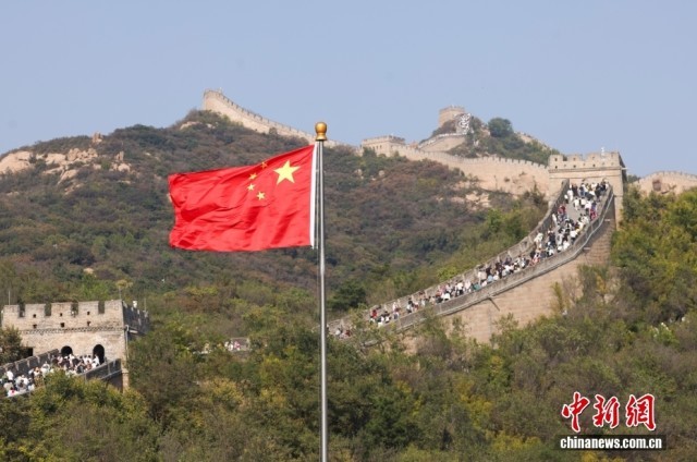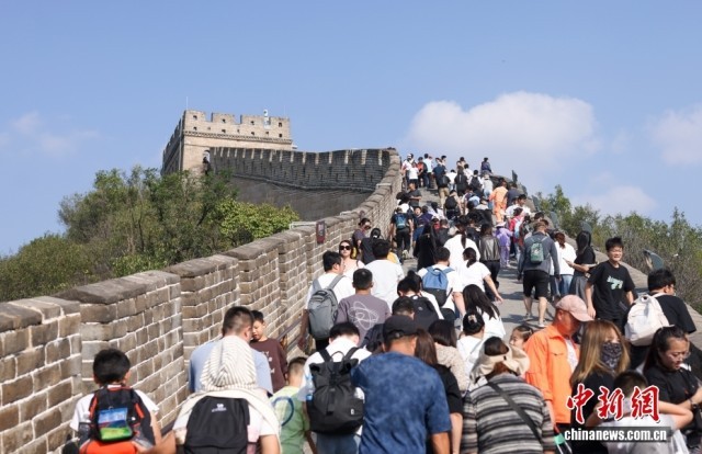 10月2日,国庆中秋假期第二天,北京八达岭长城景区人气旺。