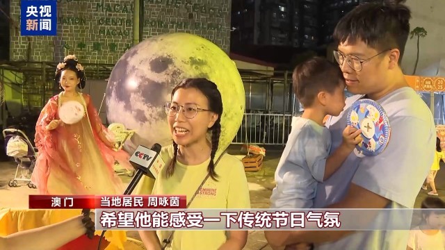 当地居民 周咏茵:我们今天带小朋友来,希望他能感受一下传统节日气氛 。我们祝大家中秋节快乐,祝我们的祖国繁荣昌盛。