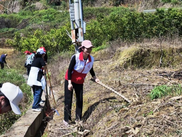 2024年3月12日,陈燕兰在陈塘镇参与冬春水利修建志愿服务活动。蒙山县团委供图