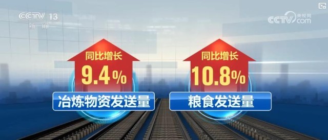 前三季度,重点物资运输保障有力。煤炭、冶炼物资、粮食等运输项目开辟绿色通道,确保高效送达。1至9月,国家铁路发送煤炭15.53亿吨,其中电煤10.56亿吨,铁路直供电厂存煤保持较高水平。冶炼物资、粮食发送量同比分别增长9.4%、10.8%。
