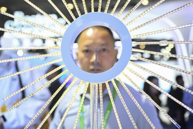 11月7日,观众在医疗器械及医药保健展区美敦力“首发”展台参观。新华社记者 陈浩明 摄
