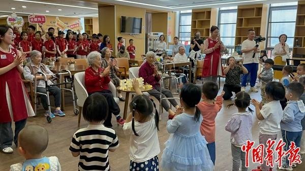 “我们不只是把养老和托育放在同一个空间,更通过服务实现老幼融合。两者的互动不是孤立或单一的,而是可持续的。”牟笑苇说,融合园会定期开展“老幼共融、代际互动”系列活动,比如让老人和幼儿一起做手工,邀请老人为幼儿讲述故事等。这样既能提升老人的价值感,也能丰富孩子的精神生活。