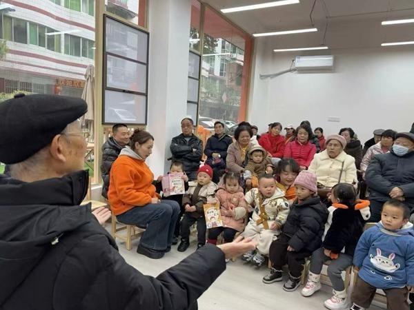 黑籽儿普惠老幼融合园,90岁的退伍军人给托育园的孩子们讲红色故事。受访者供图