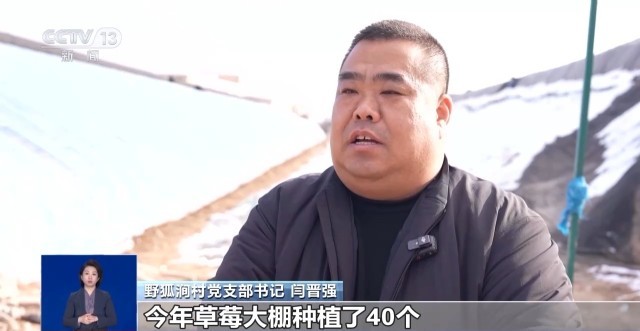 野狐涧村党支部书记 闫晋强:今年草莓大棚有40个,这两天我们的草莓陆续成熟上市了,一直能采摘到明年6月份,也为周边市民提供了一个休闲娱乐的好去处。