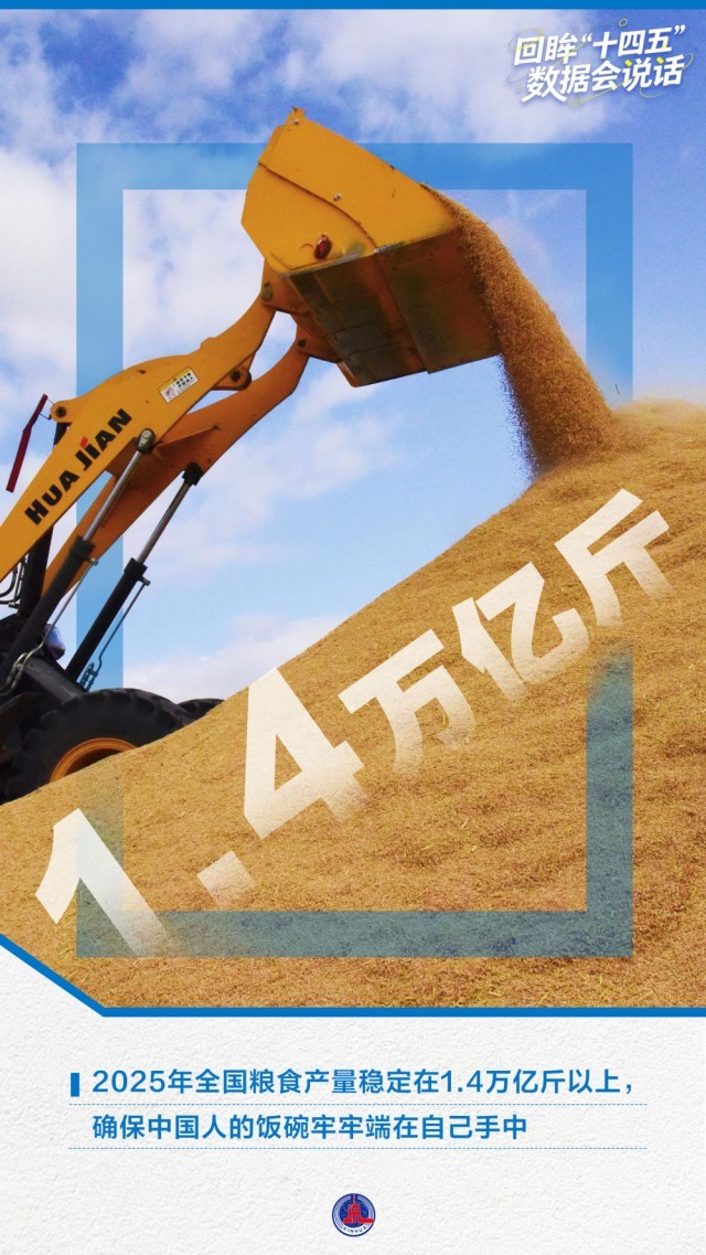 2024年,我国粮食产量首次迈上1.4万亿斤新台阶,人均粮食占有量达到500公斤,高于国际公认的400公斤粮食安全线。