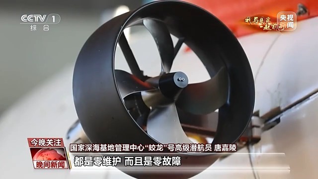 国家深海基地管理中心“蛟龙”号高级潜航员 唐嘉陵:这一次装备国产化升级之后,特别是推进器,现在的7台推力器全都是用的自己国产的推力器了。由原来的三叶桨到现在是四叶桨。这让潜水器在水下航行的速度比以前更快了,以前可能只能到2.5节每小时,最大速度我们现在可能甚至能到3节每小时。另外,原来的推进器是进口的,可能每3到4个潜次,我们都要把桨叶拆下来进行清洗维护,现在是完全国产的推力器,2025年“蛟龙”号出来这已经是第91个潜次了,在海上都没有维护过,都是零维护,而且是零故障。