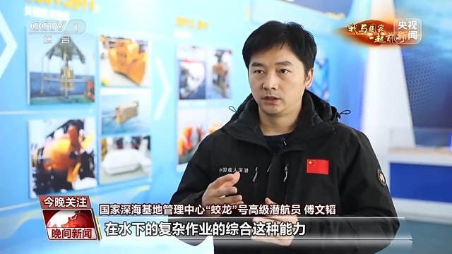 国家深海基地管理中心“蛟龙”号高级潜航员 傅文韬:对我们未来的,这种在水下的复杂作业的综合能力,是非常好的基础,因为它解决了我们两套系统,就是“奋斗者”号以及“探索三号”的母船,以及“蛟龙”号和“深海一号”母船,两套大系统之间的这种通讯,导航定位的一个融合。
