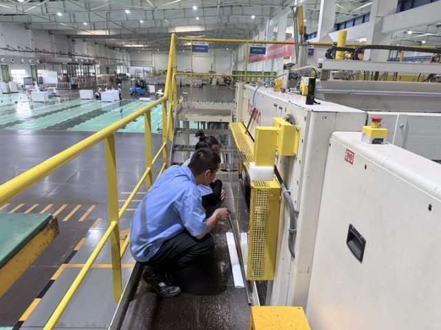 2月20日,工作人员在广西太阳纸业有限公司北海厂区生产车间进行设备安全检查。(采访对象供图)