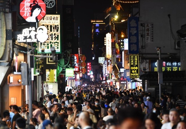 游客在长沙市太平古街休闲游览(2022年7月29日摄)。“十四五”期间,非物质文化遗产、文博IP等消费爆款频现,城市漫步、中式茶饮等成为时尚消费潮流,各地推行各类优惠、补贴,释放消费潜能,激发市场活力。