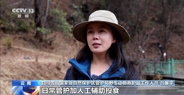 白马雪山国家级自然保护区管护局野生动物救护站工作人员 吕馨宇:摸索形成了日常管护+人工辅助投食+伤病救治+猴群分群的全链条保护体系,让猴群数量稳定在50到70只。