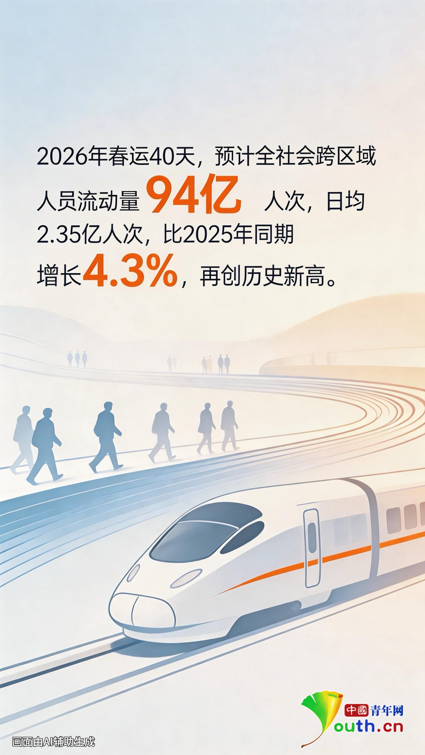 2026年春运预计全社会跨区域人员流动量94亿人次 !一组海报速览出行数据