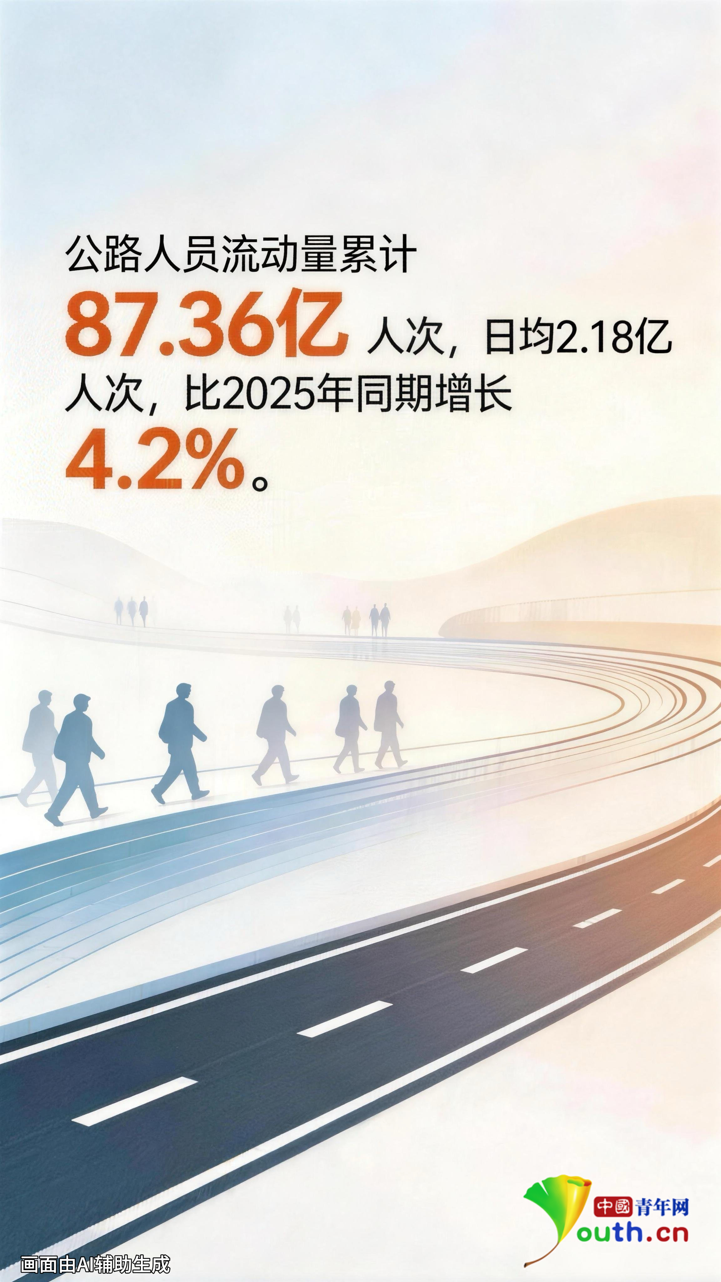 中国青年网北京3月13日电(记者 纪佳琦)3月13日,为期40天的2026年春运正式落幕。记者从交通运输部获悉,春运40天,预计全社会跨区域人员流动量94亿人次,日均2.35亿人次,比2025年同期增长4.3%,再创历史新高。