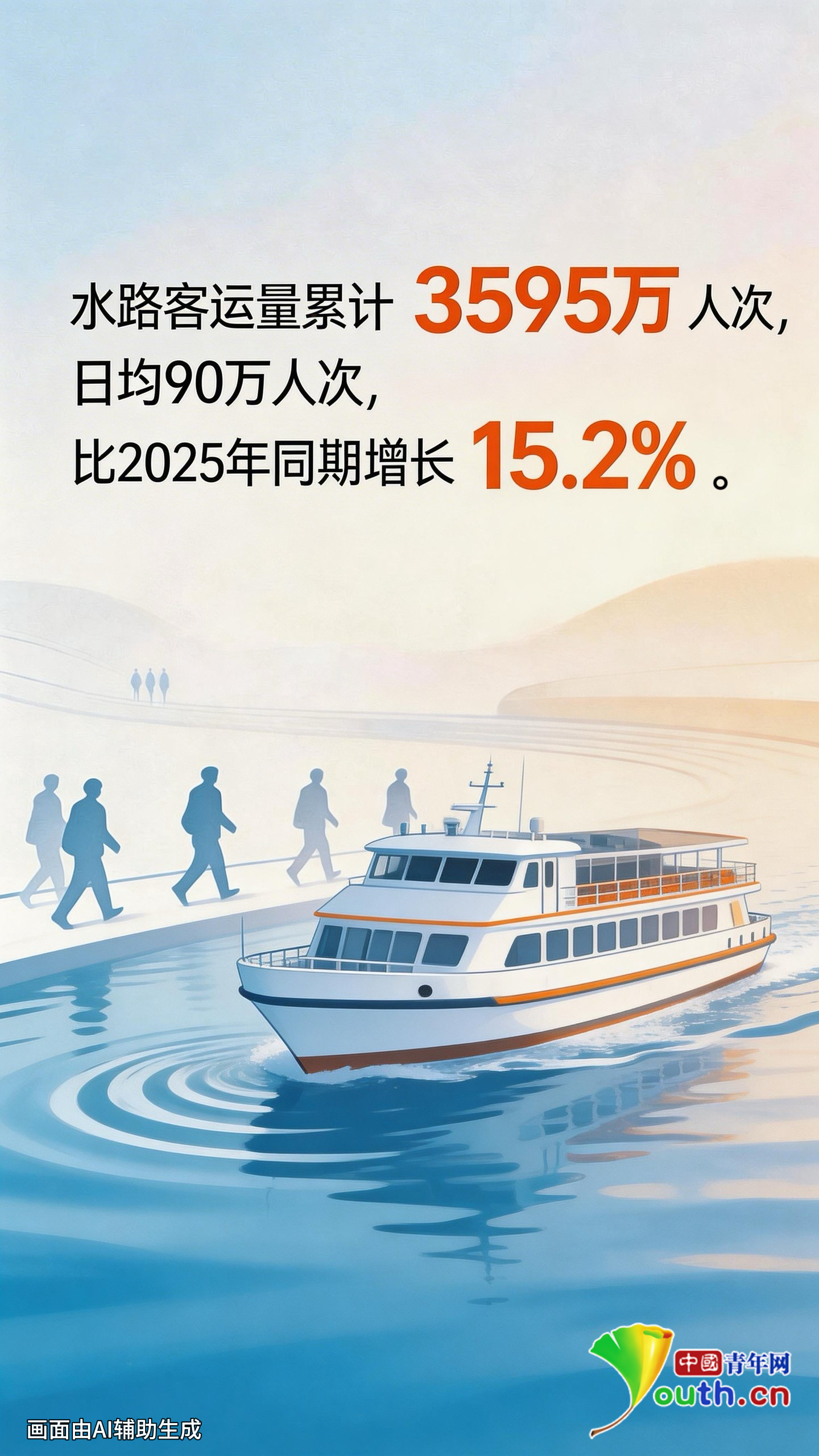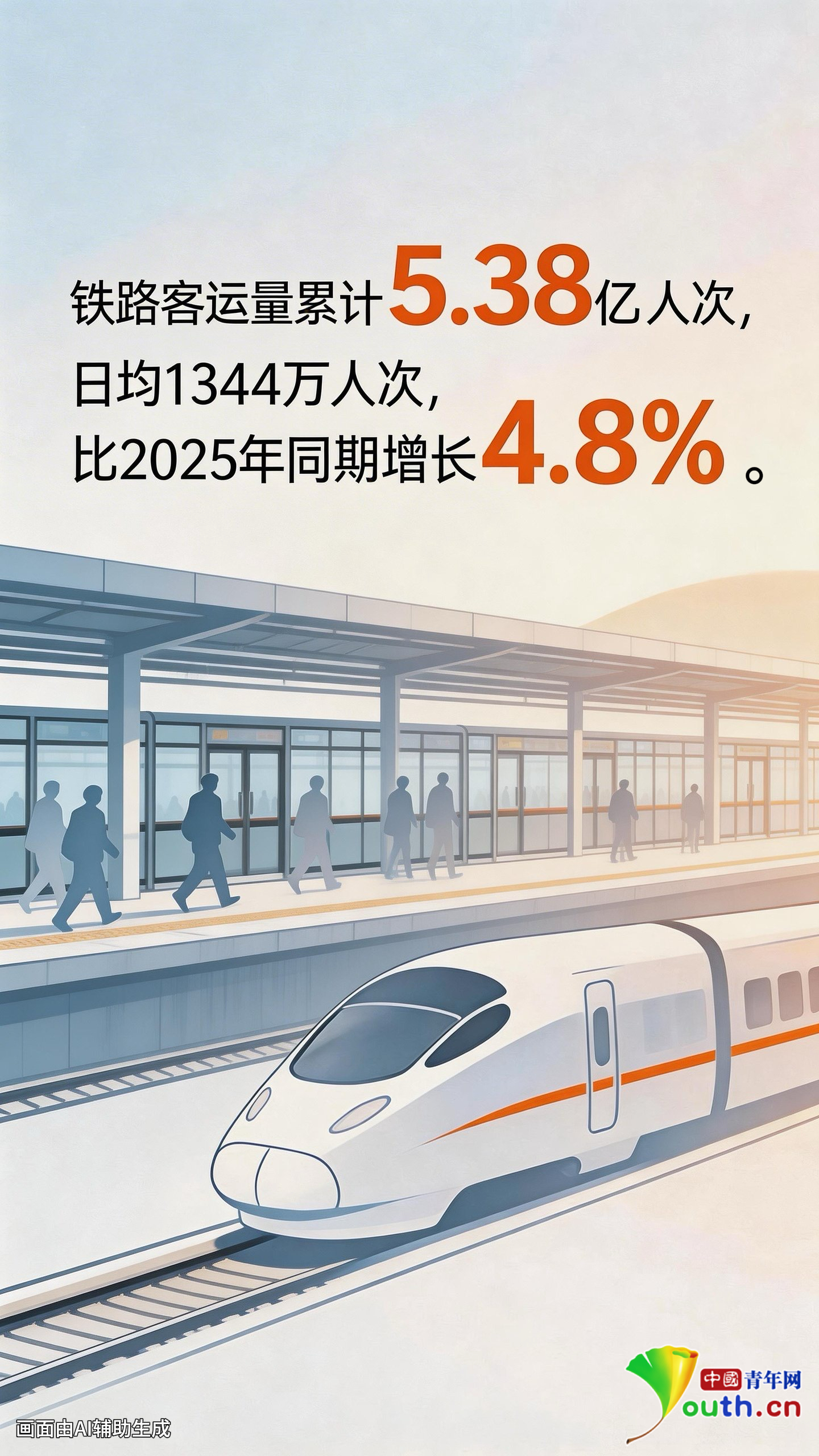 其中,铁路客运量累计5.38亿人次,日均1344万人次,比去年同期增长4.8%。水路客运量累计3595万人次,日均90万人次,比去年同期增长15.2%。民航客运量累计9439万人次,日均236万人次,比去年同期增长4.6%。