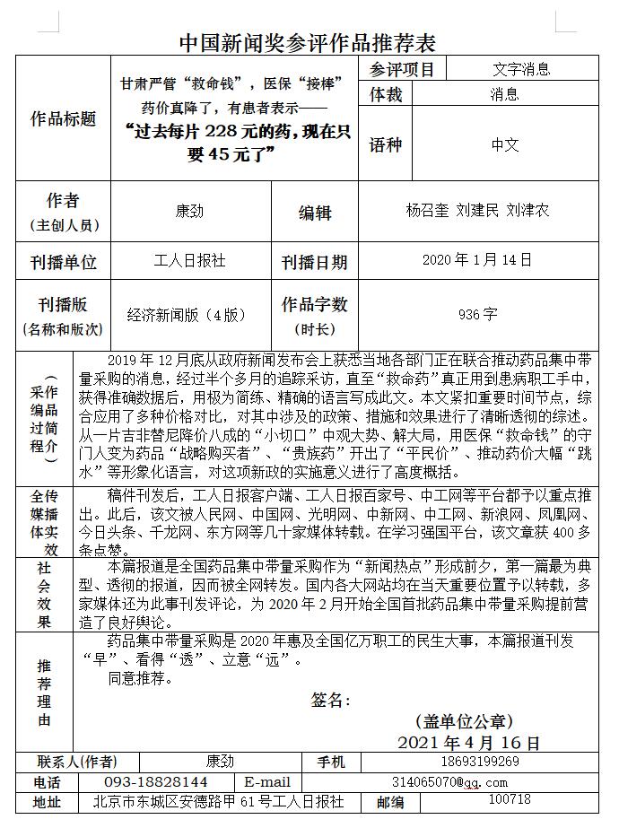 本报讯(记者康劲)“进入2020年,过去每片228元的药,现在只要45元了,减掉了八成……”家住兰州的职工穆师傅,去年被确诊为非小细胞肺癌,因此对治疗该病的吉非替尼的价格非常敏感。过去吃这种药每月要6800多元,现在受益于药品集中采购的新政,每月仅要1350元;同时,因为自付一定比例可以纳入乙类医保报销,个人仅需承担500元左右。