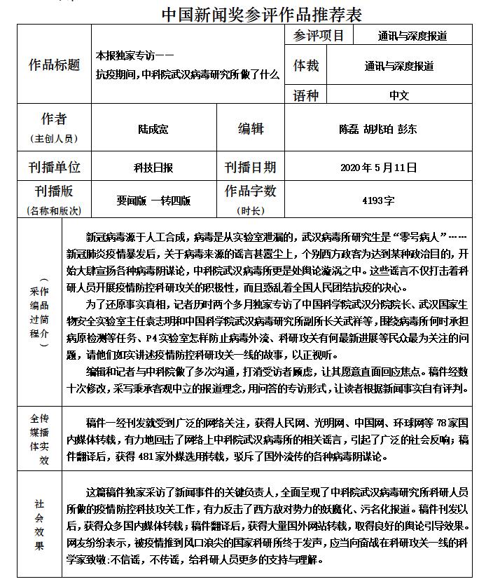 为全面呈现武汉病毒所科研人员所做的疫情防控科技攻关工作,讲述他们在疫情防控科研攻关一线的故事,科技日报独家专访了中国科学院武汉分院院长、武汉国家生物安全实验室主任袁志明和中国科学院武汉病毒研究所副所长关武祥。