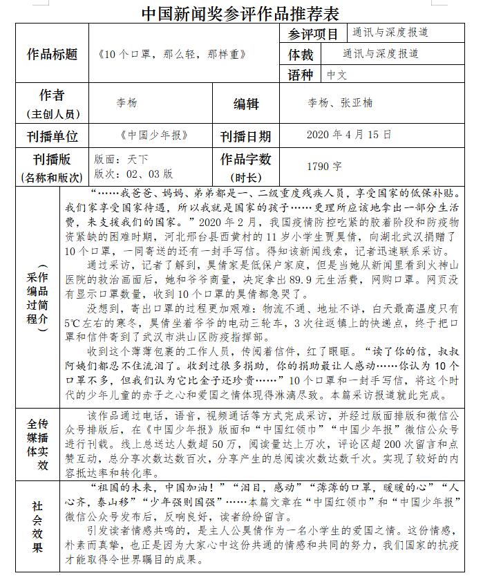 “各位医护人员大伯、叔叔、阿姨们,辛苦了!我是河北省邢台市邢台县西黄村中心学校马河完小四年级一班学生贾昊倩,11岁……我爸爸、妈妈和弟弟都是一、二级重度残疾人员,享受国家的低保补贴。我们家享受国家待遇,所以我就是国家的孩子。我们国家有难了,外国朋友都向我国捐赠钱物,何况我们一个受国家恩惠的家庭,更理所应该地拿出一部分生活费,来支援我们的国家。虽然东西不多,但也是我们低保户的一点点心意吧……”