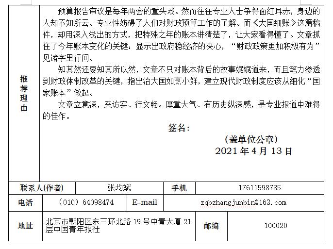 附件:中国新闻奖参评作品推荐表