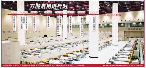 截至2月16日,武汉市已启用11座方舱医院。这些分布各区的生命方舟,“用于收治更多需要治疗的患者,实现应收尽收、应治尽治的目标。”2月15日,首次“开在抗疫前线”的国新办发布会上,国家卫健委医政医管局副局长焦雅辉用了“至关重要”定义方舱之于武汉保卫战的作用。