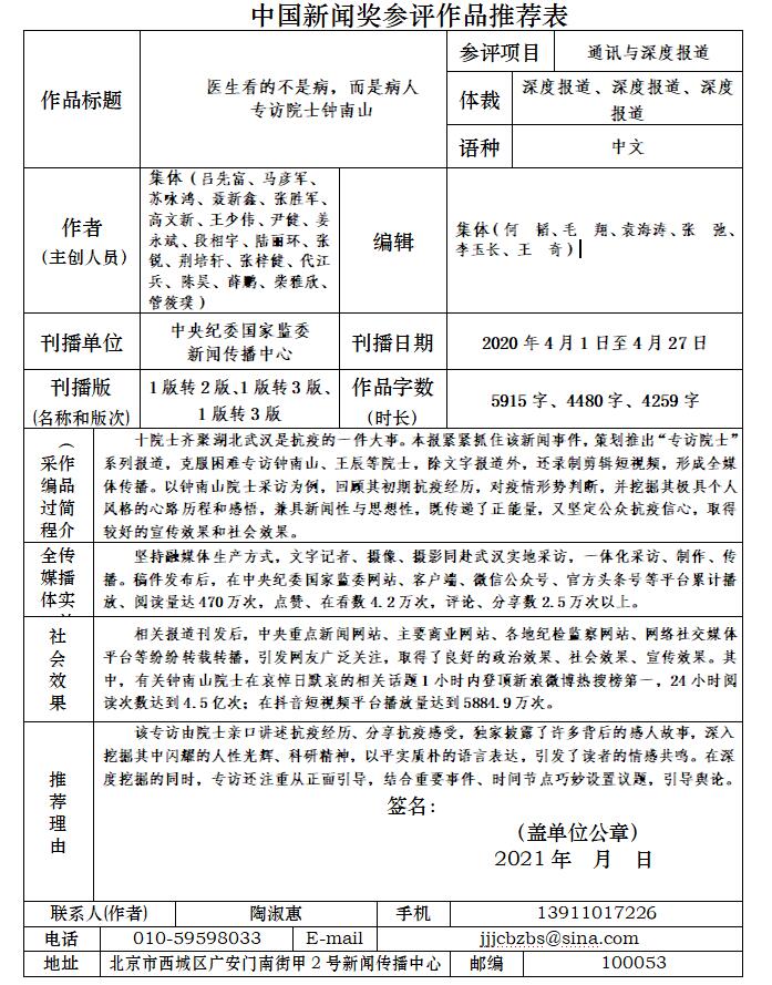 附件:中国新闻奖参评作品推荐表