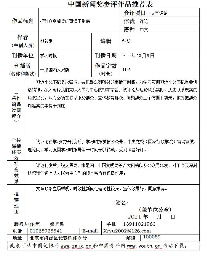 附件:中国新闻奖参评作品推荐表