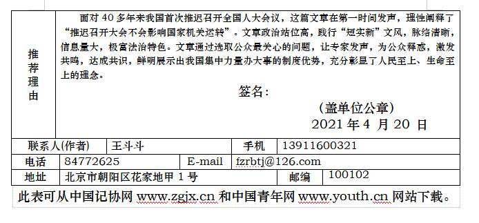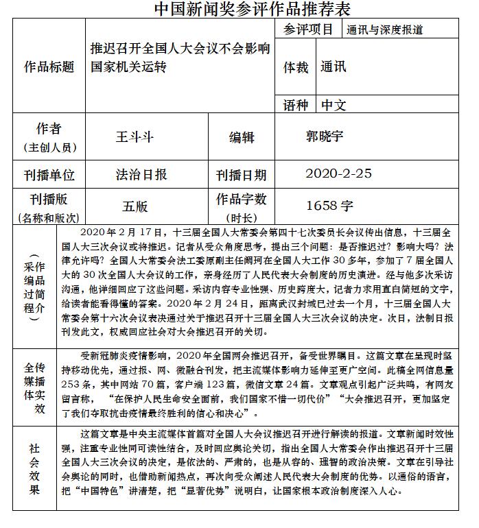 附件:中国新闻奖参评作品推荐表