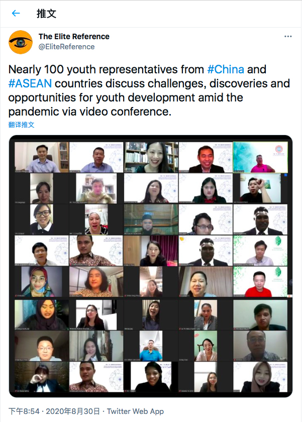 北京时间7月27日晚8点,来自中国、文莱、印度尼西亚、马来西亚、菲律宾、新加坡和泰国的近百名青年代表在网上“共聚一堂”。