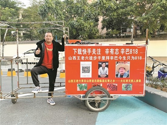 直播平台三亿日活用户给了他“能火”的希望。为了让自己涨粉速度更快,王老六从直播平台特有的“家族体系”获得灵感,作出一个决定:拜头部主播辛巴为师。于是,2021年3月,安顿好老婆孩子后,王老六揣着一千块钱,拖着徒步车和一顶睡觉用的帐篷,徒步前往广州。