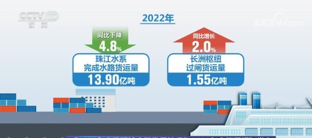 数据显示,2022年,长江水系省市完成水路货运量61.7亿吨,同比增长4.5%;长江干线港口货物吞吐量35.9亿吨,同比增长1.7%;三峡枢纽通过量1.6亿吨,同比增长6.1%;珠江水系完成水路货运量13.90亿吨,同比下降4.8%;长洲枢纽过闸货运量1.55亿吨,同比增长2.0%。