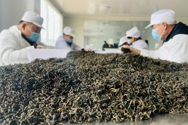 4月8日,在清河龙森山特农业有限公司,工作人员筛选产自育林林场水曲柳地间作的蒲公英茶。新华社记者范迎春 摄