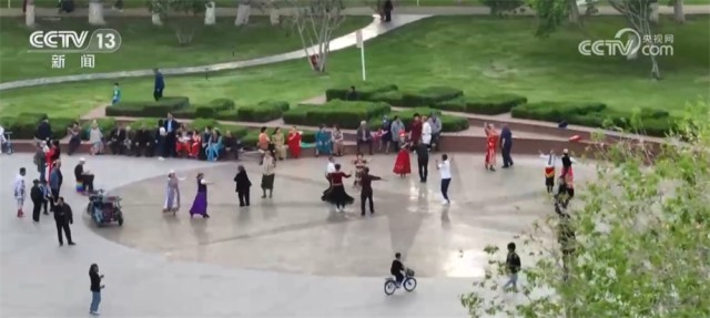 塔城市新城街道哈尔墩社区党总支书记 主任 巴哈尔古力(维吾尔族):音乐一响起来,他们都特别喜欢跳,比如说我是维吾尔族,我也会跳比如说蒙古族舞、俄罗斯族舞、塔塔尔族舞、汉族舞,还有维吾尔族舞、哈萨克族舞,反正哪个民族的音乐响起来,我们都是不管是会还是不会,我们通过“百家宴”都学。