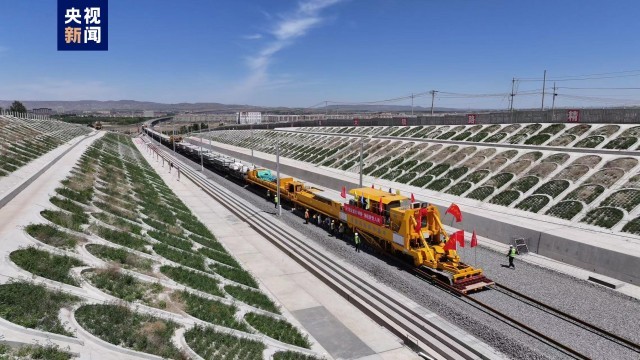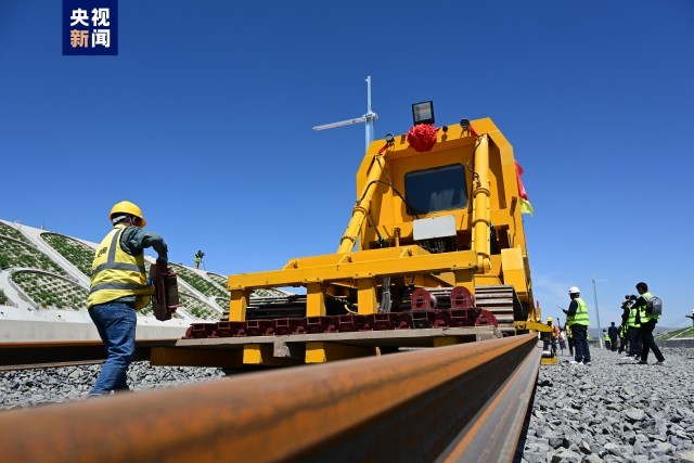 5月15日上午,在集大原高铁内蒙古乌兰察布至山西大同段建设现场,随着第一对500米长钢轨顺利铺设,标志着集大原高铁全线进入铺轨阶段。