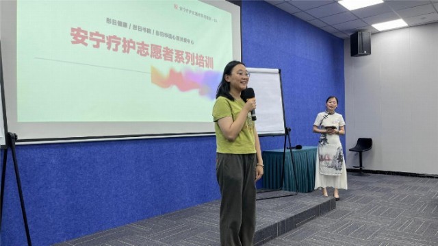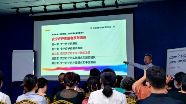 图为陆亦逊进行安宁疗护志愿者培训