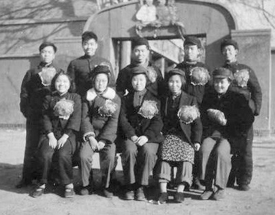 黄会林(前排左二)参军入伍时,与同学们的合影。
