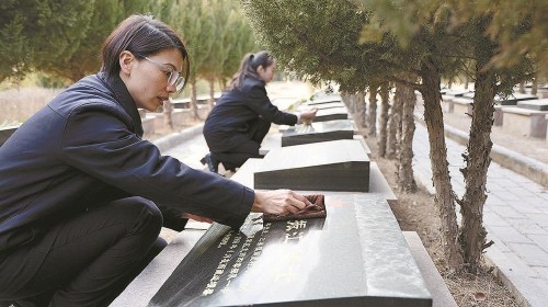 今年清明节前夕,陕西省泾阳县检察院干警前往泾阳县烈士陵园,祭扫11名烈士的衣冠冢。