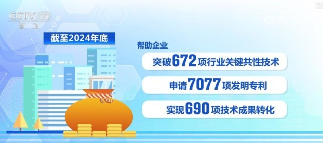 此外,我国科技服务能力显著提升,已建成33家国家级制造业创新中心,截至2024年底,帮助企业突破672项行业关键共性技术,申请7077项发明专利,实现690项技术成果转化。