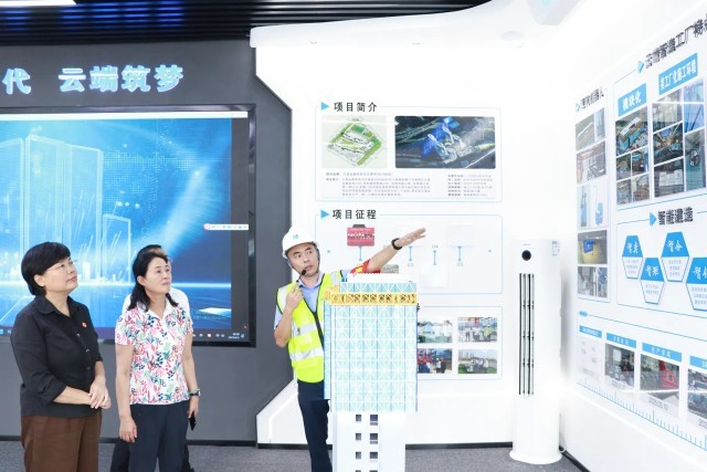 宣讲结束后,与会人员实地观摩了五通金融商务区安置房项目,参观"云端智造工厂"展示区,了解智能集成、多重防坠等八大核心技术。