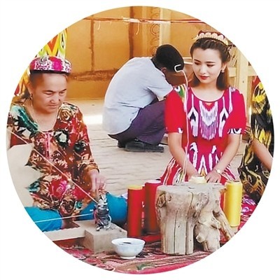 当地群众在制作艾德莱斯绸。