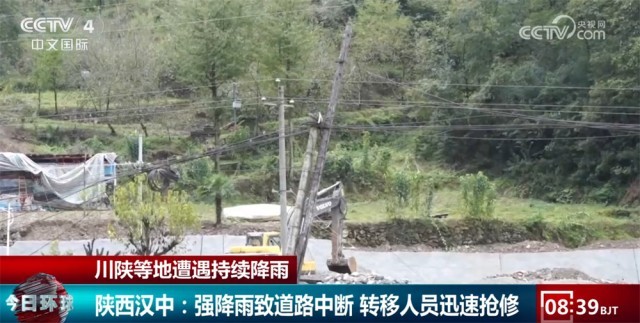 在陕西汉中硖口驿镇,强降水导致部分道路中断,当地迅速组织人员、机械对受损路段进行抢修,保障物资运输和人员通行顺畅。此外,当地在强降雨来临前已经完成涉险群众的转移工作。