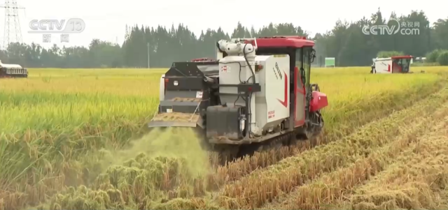 四川崇州的32万亩水稻迎来大面积收获。今年,当地以长江上游优质粮油中试熟化基地为纽带,联合30家科研院所完成798个水稻品种试验示范,借助“良种良技”,水稻的亩产比去年提升了大约5%。