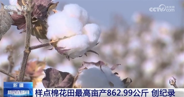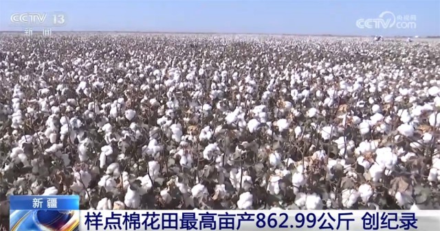 新疆:样点棉花田最高亩产862.99公斤 创纪录