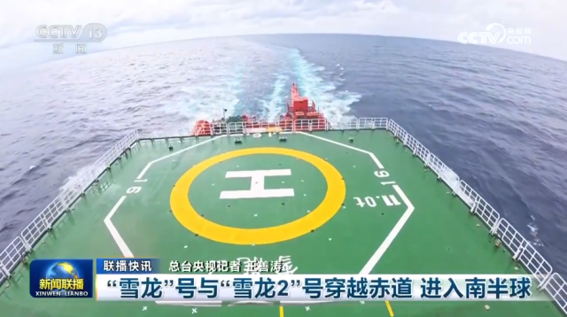 “雪龙”号与“雪龙2”号穿越赤道 进入南半球
