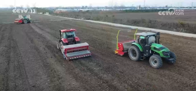 在四川成都天府新区的农田里,无人机执行播种任务。种子和肥料同播,单机日作业量达200亩。地头的智慧监测站是这次播种任务的“指挥中心”,配合多光谱无人机和卫星遥感,构建起“空天地”立体监测网络。 在安徽阜阳颍东区正午镇,中国农资阜阳服务中心托管的1300亩高标准农田里,装载北斗导航系统的播种机正在自动驾驶作业。