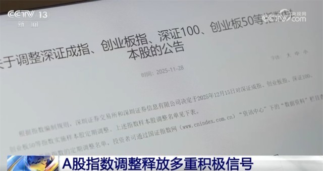 央视网消息:12月15日收盘后,深证成指、创业板指、深证100、创业板50等深市核心指数样本股正式调整。