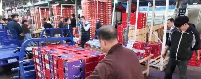 总台记者 张琦:目前这里四成多的蔬菜瓜果是要运往北方的。从田间到市场再到餐桌,新一年的喜悦与期盼,藏在市场里一箱箱跨越南北的蔬菜水果中。