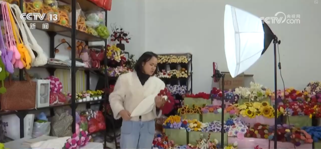 目前已有50多人参与编织,产品涵盖花篮、收纳筐等多个品类,月销售额稳定在8万元,通过短视频、直播带货拓展线上渠道后,订单持续增长。
