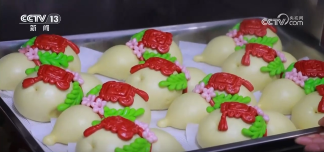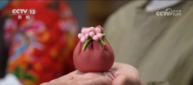 家常花馍抚慰味蕾,而色彩斑斓、造型精美的花馍则带来了视觉享受。为增添喜庆氛围、讨个好彩头,手艺人用红、黄、绿等彩色面团,捏出福袋、花朵等造型,让原本普通的主食变成了春节期间的独特风景。花馍制作全凭手工,既考验制作者的巧思,更是一门指尖上的技艺。花馍制作手艺人郑习灵称:“像我手里拿的这个福袋,这个红色是加入了甜菜根,这个粉色是加入了仙人掌果粉,绿色是用菠菜汁。面团得经过揉、捏、擀,最后才能做出这样造型。”
