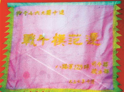 图为“红四连”被授予的“战斗模范连”战旗。资料照片