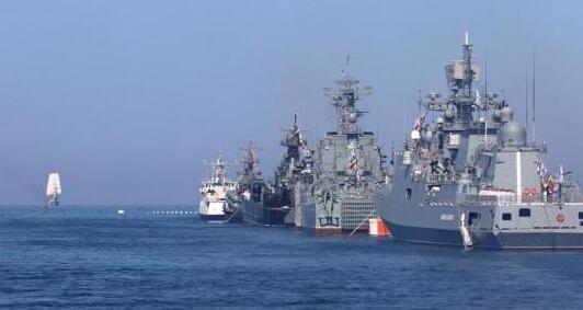 资料图:当地时间2019年7月26日,俄罗斯海军在黑海举行海军日阅兵彩排,多种军舰和武器集中亮相。