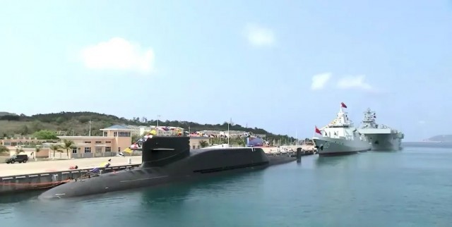 2021年4月23日,海军三型主战舰艇——长征18号艇、大连舰、海南舰在海南三亚某军港集中交接入列。